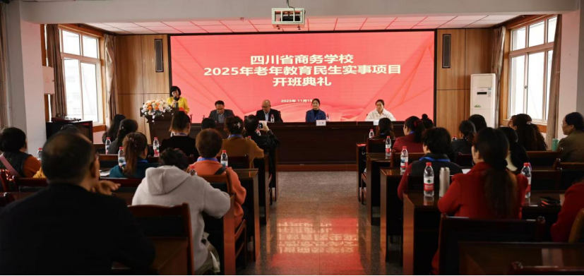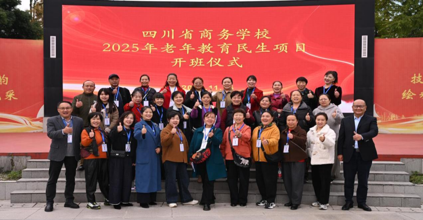 为贯彻落实《四川省教育厅等七部门关于做好2025年老年教育民生实事工作的通知》精神,四川省商务学校继续教育中心于2025年11月15日启动为期10天的第一期老年民生实事项目培训。学校副校长陈庆林、继教中心主任赵垣、安靖街道老协副主席王莉、喜安社区社工机构负责人王书敏及全体学员共计约40人参加开班典礼。现场气氛热烈,学员精神饱满,满怀期待。