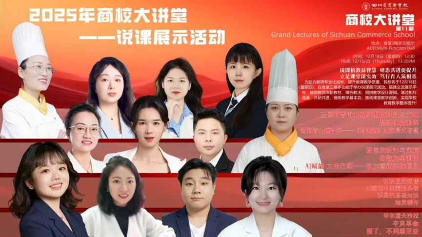 为了搭建跨学科、跨专业的教学交流平台,鼓励教师围绕“学生中心、成果导向”的教学理念,展示课程设计的思路、方法与特色。2025年12月18日下午13:30在学校食堂三楼多功能厅举办2025年“商校大讲堂”之说课展示活动,本次活动共有来自语文、数学、历史、专业技能等10个不同学科(专业)的12位教师参与,并特邀校领导组成评审委员会,活动由教务科李玉双老师主持,全校教职工参加此次活动。