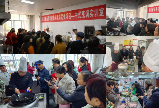 学校高度重视此项工作,成立专项工作组,保障项目有序推进,依托校内实训资源,投入资金近14万元对300平方米左右的场地进行适老化改造,配备安全设施,打造安全舒适的学习环境。课程设置立足老年人需求,开设“中式烹调(家常菜)”“中西面点”“茶艺插花”三大实用课程,组建了由注册烹饪大师、川菜名师、国家级茶艺师/花艺师领衔的15人优质师资团队,采取“老师演示+学员实操+点评”方式,实行规范化与全免费公益教学,获得学员广泛认可。项目通过多渠道宣传,开设学位70个,实际招收学员73人,超额完成目标,累计组织教学1236人次,学员满意度达97%以上。