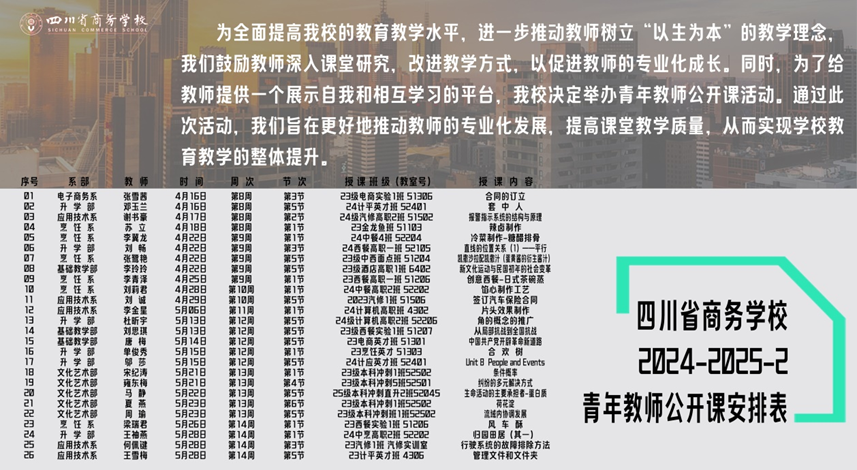 附件1:四川省商务学校 2024-2025-2学期 青年教师公开课活动.pdf  (0.77M)[下载]  [PDF阅读]