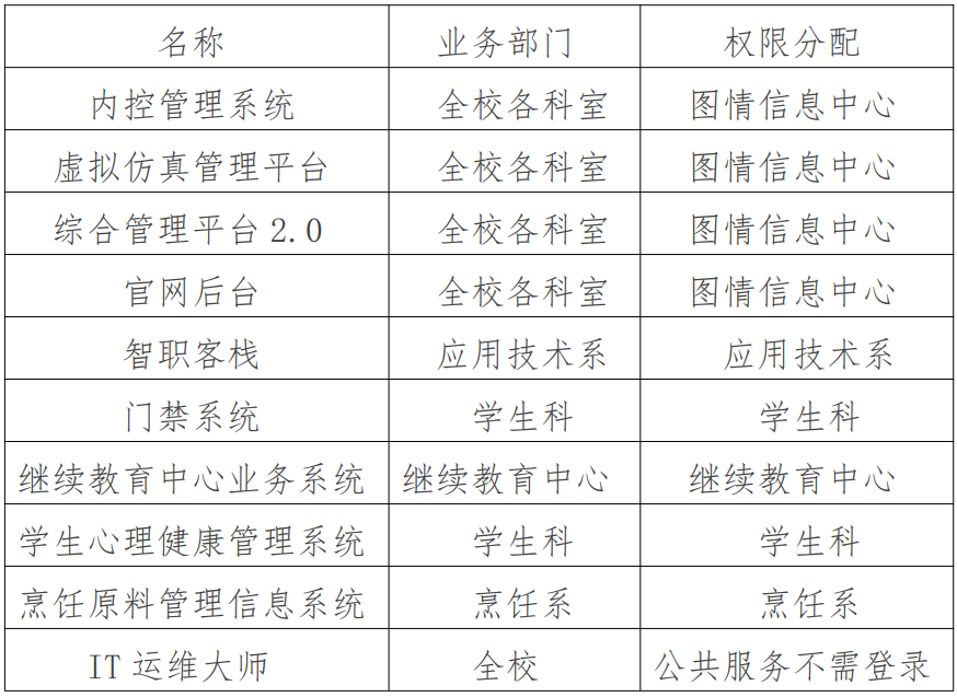 目前除了官网后台因经费原因没有开发单点登录程序之外,其余第三方系统均已实现统一认证,单点登录——即只需要记住门户网站地址,记住工号,就能从事权限范围内的业务。