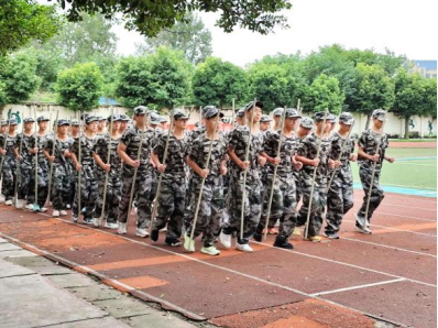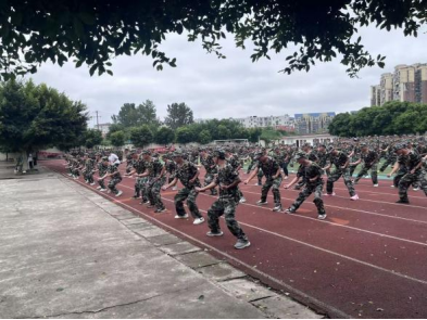 大会各项议程有序推进。首先进行的是全体肃立奏唱《中国人民解放军军歌》环节。激昂的旋律回荡在运动场上空,展现出新生们昂扬的斗志与对军队的崇敬之情。军歌奏毕,分列式表演登场,标兵整齐就位后,各连队新生迈着铿锵有力的步伐依次通过主席台,嘹亮的口号和规整的队形充分展现了为期一段时间入学教育的丰硕成果。分列式结束后,标兵有序撤回,军事科目汇报表演随即展开。匕首操的凌厉、棍术的刚劲、擒敌拳与军体拳的利落、刺杀操的威武,新生们动作标准划一、气势如虹,赢得了在场领导与老师的阵阵掌声。