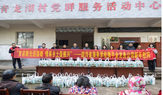 1月6日,四川省商务学校携手益海嘉里金龙鱼集团,赴广安区井河镇青龙湖村、文进村开展“岁启新元送温暖 情系乡土促振兴”新年走访慰问活动,为乡亲们送去节日问候和生活物资。学校党委副书记张旭,党委委员、副校长葛惠伟,益海嘉里金龙鱼集团川渝区域慈善负责人杨艳、井河镇党委书记雷力等参加此次活动。