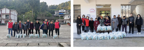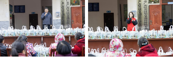 致辞环节,张旭、葛惠伟、杨艳分别表示学校与企业将持续发挥资源优势,凝聚帮扶合力,助力乡村振兴不断取得新成效。雷力对学校和企业长期以来的支持表示衷心感谢,并勉励村民保持奋斗精神,把握发展机遇,与镇村一道共创美好生活。随后,学校领导、企业代表与驻村工作队为现场村民发放了满载情谊的米、面、油等慰问礼包,累计向两村村民发放由益海嘉里金龙鱼集团提供的慰问品280份,在新年到来之际,将关怀与温暖送到群众身边,助力乡村振兴事业走深走实。集中活动结束后,慰问组继续开展入户慰问,详细了解两村居民的生活近况,叮嘱居民保重身体,并关心孩子的学习与成长,鼓励学子报考四川省商务学校。