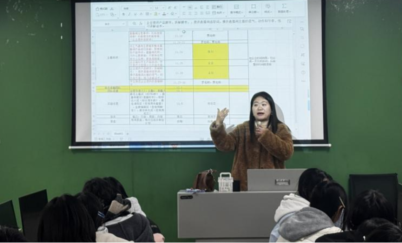在实操环节,学生通过研读产品手册、拆解直播脚本,学习专业内容与直播表达的融合技巧,为承接企业项目打下基础。课后,贾岚老师要求学生持续钻研企业脚本,实现产品专业知识与直播表达技巧的深度,并鼓励学生持续练习,参与后续模拟直播,提升实战能力。