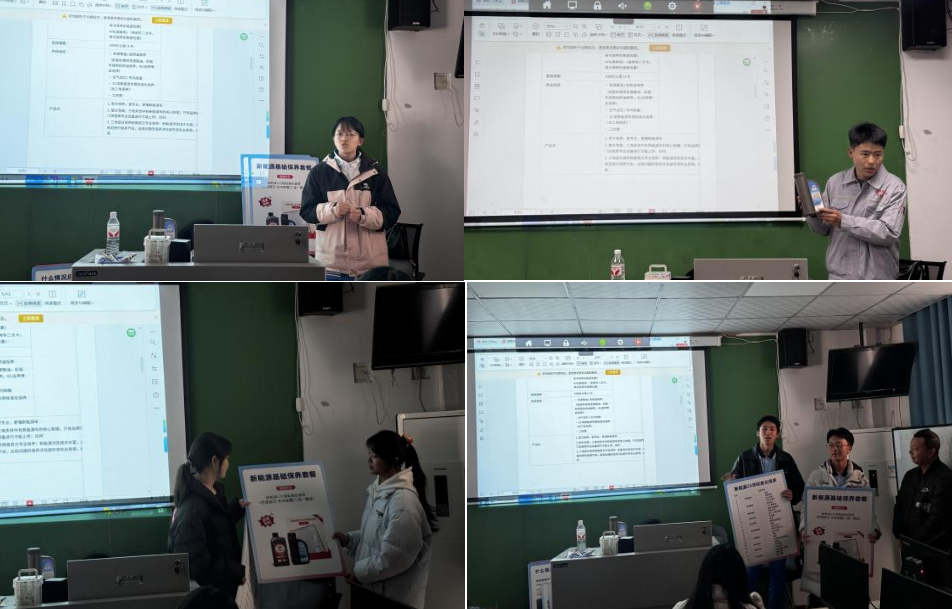 培训中,向静文系统讲解燃油车与新能源汽车的保养套餐、易损件更换等产品知识,明确汽修专业知识的直播应用场景;同时针对性指导电商专业学生话术设计,帮助汽修学生练就卖点通俗化表达能力。