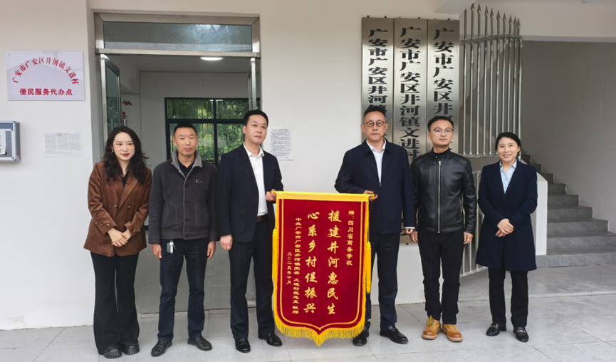 随后,慰问组前往文进村,实地查看修葺一新的党群活动室。在现场,李文川校长仔细询问活动室修缮标准、功能布局及使用规划,强调党群活动室是村级组织的“红色阵地”、服务群众的“便民窗口”,要以“实用、便民、长效”为原则,充分发挥其在政策宣传、议事协商、文化活动等方面的作用,让活动室真正成为凝聚党员、服务群众、推动发展的“乡村振兴加油站”。同时,李校长要求驻村工作队以活动室翻新为契机,进一步激发村级组织活力,结合学校烹饪、电商等特色专业资源,探索“党建+技能培训”“党建+产业赋能”模式,助力文进村培育特色产业、提升村民技能,推动“组织振兴”与“产业振兴”“人才振兴”深度融合。开展乡村振兴工作以来,学校真抓实干、鼎力帮扶,井河镇党委书记雷力现场赠予学校锦旗。