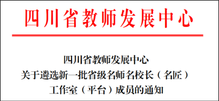 为深入贯彻落实党的二十届四中全会精神,弘扬教育家精神,加强高素质专业化教师队伍建设,着力培养一批名师名校长(名匠),示范引领全省教师校长专业发展,四川省教师发展中心组织开展了新一批省级名师名校长(名匠)工作室(平台)成员遴选工作。