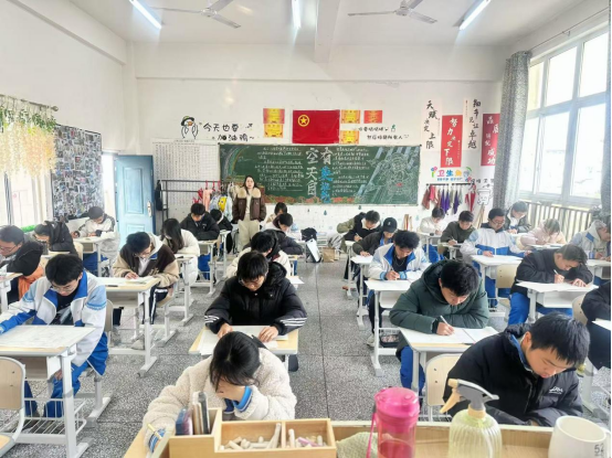 追星赶月人潮涌,奋力拼搏冲向前。9个升学班级考场秩序井然,学生们凝神专注、认真作答,充分展现了我校学子勤勉好学、积极向上的精神风貌;监考教师严格履职,规范执行监考流程,确保考试公平公正。