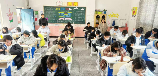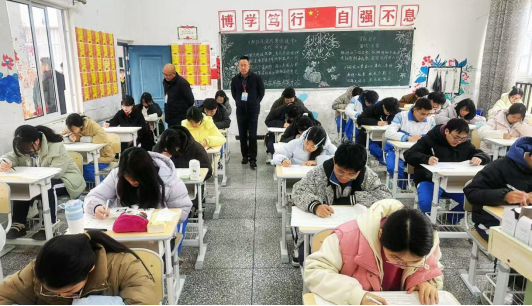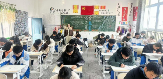 追星赶月人潮涌,奋力拼搏冲向前。9个升学班级考场秩序井然,学生们凝神专注、认真作答,充分展现了我校学子勤勉好学、积极向上的精神风貌。监考教师严格履职,规范执行监考流程,确保考试公平公正。