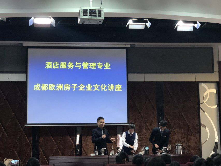 2019年3月22日上午,我校17级与18级酒店专业学生齐聚多功能厅,聆听了来自成都欧洲房子的企业宣讲,与企业进行了一次亲密接触。活动现场,陈晓强总经理为同学们讲述了欧洲房子的创始理念、企业文化与未来企业的发展方向,并分享了他个人在欧洲房子的成长经历,帮助同学们更加清晰地认识职业发展方向。