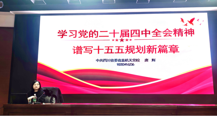 为深入学习贯彻党的二十届四中全会精神,切实把教育教学工作融入国家发展大局,2025年12月11日下午,我校特邀中共四川省委省直属机关党校唐辉老师,为全体教师作专题培训。