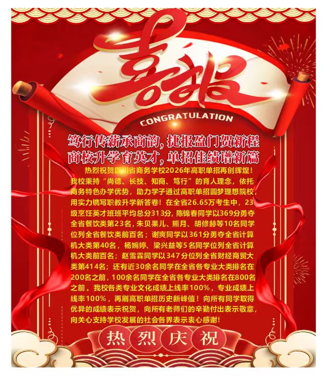 >>2026年四川省商务学校高职单招喜报