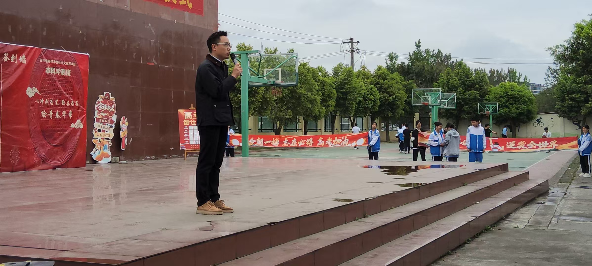 四川省商务学校文化艺术部罗辉主任(代)的讲话,如明灯般照亮了学子们的前行之路。他肯定了同学们在备考路上的努力与坚持,同时也从学习方法、心态调整、目标规划等方面给予了细致指导,鼓励大家在最后的冲刺阶段,咬紧牙关、脚踏实地,用汗水浇灌梦想之花。
